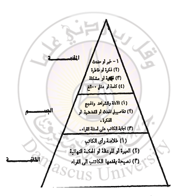 ويوضح الشكل التالي البناء الفني للعمود الصحفي المبين على قالب الهرم المعتدل: