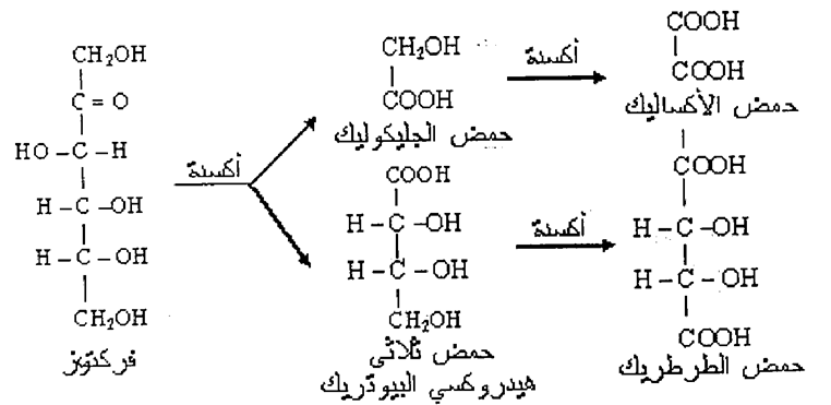 ومن الممكن ان تتم أكسدة السكريات على كل من المجموعة الألدهيدية (-CHO) والكحول الطرفية أو الأخير (CH2OH) في ان واحد اي تحول الجلوكوز إلى حمض الجلوكاريك أو حمض السكاريك كما يلي: