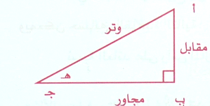 التفسير الأول يرتبط بالمثلث القائم الزاوية حيث النسب المثلثية هي علاقات بين كل اثنين من أضلاع هذا المثلث كما يلي :