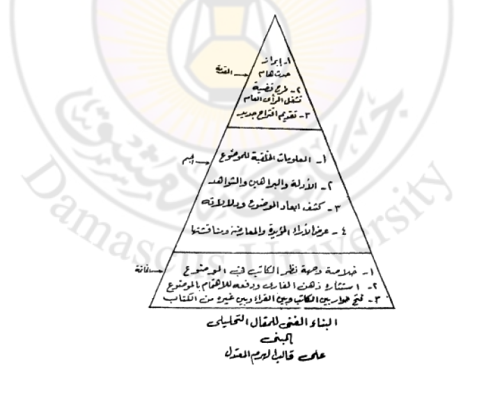 8 - ويوضح الشكل التالي طريقة كتابة المقال التحليلي المبني على قالب الهرم المعتدل: