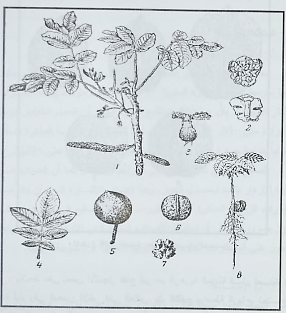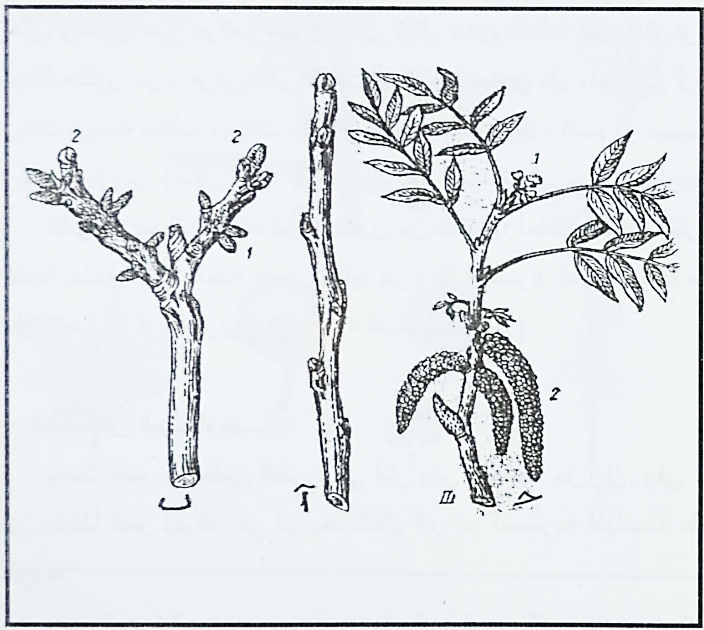 شكل يبين اعضاء النمو والاثمار في الجوز