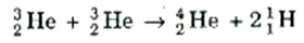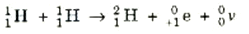 حيث +10e إلكترون موجب (يسمى بوزيترون) و 00v نيوترينو. ثم يتفاعل الديوتيريوم 12H بعد ذلك: