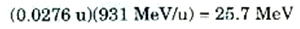 وهذا يبين أن الفقد في الكتلة هو 0.0276 u ، والطاقة المكافئة لهذه الكتلة هي: