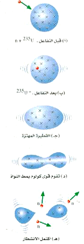 الشكل 1)): يؤدي اهتزاز النواة المركبة إلى انشطارها في نهاية الأمر.