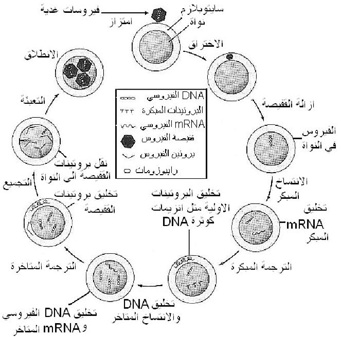 شكل1 : المراحل الاساسية لدورة الفيروسات