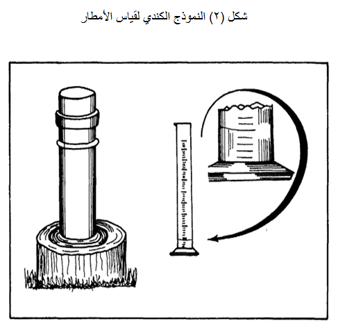 وعبارة عن جهاز بسيط، يتكون من أسطوانة بلاستيكية او معدنية طولها 580 ملم وقطر فوهتها 200 ملم، وترتبط الفوهة بقمع يوصل الامطار الى أسطوانة داخلية قطرها 20 ملم تكون غالبا مدرجة تدل على كمية الامطار الساقطة في المنطقة. وقد لا تكون مدرجة، بحيث يتم قياس الكمية بواسطة المخبار المدرج، ويتميز هذا النوع ببساطته، ولكنه لا يعطي فكرة واضحة عن كثافة الامطار (الغزارة) او ديمومتها ولا يعطي فكرة تامة عن المسار العام للتساقط خلال فترة زمنية محدودة. الا انه يمكن قياس كمية الامطار المتجمعة به في أي وقت يشاء الراصد ذلك (شكل 1 – أ).