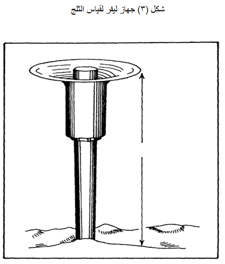 توجد مقاييس مخصصة لتقدير كمية الامطار الناجمة عن تساقط الثلج. وتشبه الى حد بعيد تلك المقاييس سالفة الذكر، الا انها لا تحتوي على قمع، بحيث تهوي الثلوج من الفوهة الى القاع ثم تذوب بعد حين، وتثبت هذه المقاييس على قائم قابل لرفعه او تنزيله وذلك حسب تراكم الثلوج (شكل 3). ويتبع الراصدين الجويين في كندا لتقدير كمية التساقط بفعل الثلوج من خلال قياس سمك الثلوج بواسطة المسطرة، بحيث يقسم السمك على 10، ويكون الناتج هو كمية الامطار الساقطة وقد لا تعد هذه الطريقة فعالة في جميع الحالات بسبب تفاوت هشاشة الثلج من مكان الى اخر ومن وقت الى اخر.