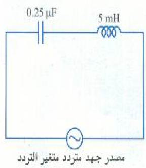 شكل 3)) : عندما يتغير تردد المصدر المبين في الشكل (1)، فإن التيار المار في الدائرة بسلك كما هو مبين بالشكل.