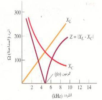 شكل ((1 : عند تغير تردد الجهد فإن كلاً من XL و XC تتغير.
