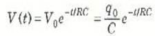عندما يوصل مقاوم R عبر مكثف مشحون مباشرة، فإن ذلك المكثف سيفرع شحنته خلال المقاوم. غذا اعتبرنا فرق الجهد الابتدائي بين لوحي المكثف هو V0 فإن التيار الذي يسرى من المكثف عندما يأخذ في التفريغ سوف يتغير بالطريقة المبينة في الشكل ( 1ب). ويسلك تيار تفريغ المكثف نفس سلوك تيار الشحن. وتناقص الشحنة على المكثف أسياً أيضاً بعد أن يتم التوصيل. هل يمكنك إثبات أن الجهد عبر المكثف لابد أن يتناقص بنفس الطريقة التي تتناقص بها الشحنة؟ وفيما يلي المعادلات الخاصة بالمقدارين q(t) و V(t):