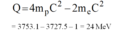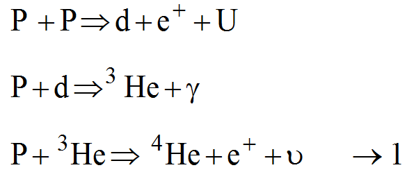 يسمي التفاعل النووي بالتفاعل النووي الحراري لأنه يحدث فقط عند درجات حرارة عالية جداً، ويعتبر هذا النوع من التفاعلات مصدر لطاقة الشمس والنجوم والتي تنتج من اندماج أنوية الهيدروجين (الدتيريوم والتريتيوم) مع بعضها لتوليد أنوية ذرات الهليوم شكل (7-2). أن تفاعلات الاندماج في الشمس ليست مباشرة بل تأخذ المراحل التالية :
