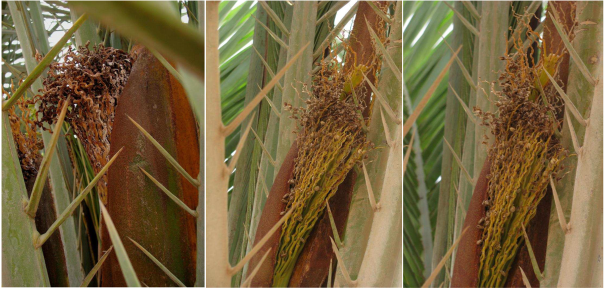 لا يمكن تميز النخيل المصاب عن النخيل السليم الا بعد خروج الطلع اواخر فصل الشتاء و بداية فصل الربيع ، الا انه من الملاحظ ان النخلة المصابة تصاب عادتا في السنه القادمة خاصه اذا كانت الظروف الجوية ملائمه لضهور الإصابة.