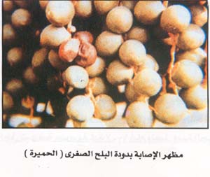ويمكن عند الضرورة إجراد رشتين على الأشجار ابتداء من شهر يونيو بالسفين القابل للبلل بمعدل 200 جم 100/ لتر ماء والرشة الثانية بعدها بفترة 21 يوم، ويجب تبخير ثمار البلح الجاف بعد الحصاد مهما كانت حالة الإصابة باستعمال برومور الميثيل بمعدل 24 جم / واحد متر مكعب لمدة2424 ساعة مع اتخاذ كافة إجراءات الوقاية في المخزن قبل وأثناء التخزين .
