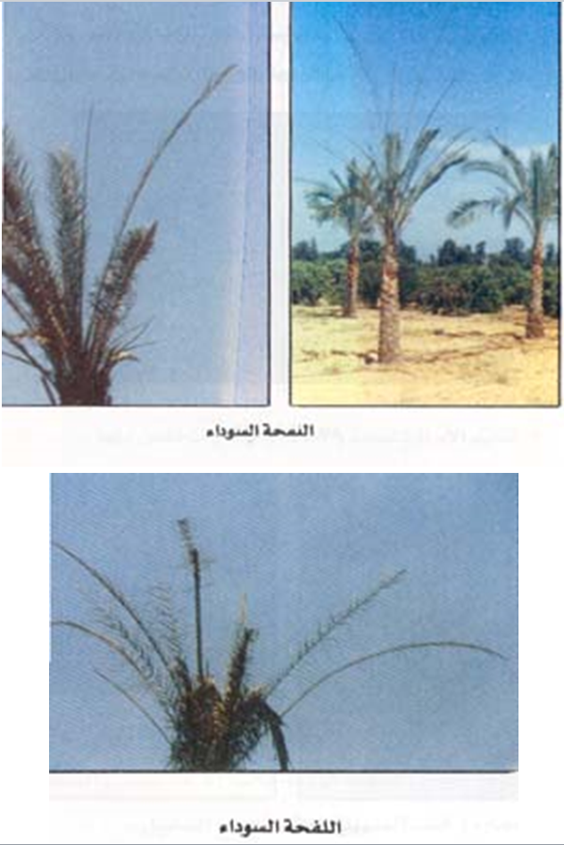 1- ظهور بقع سوداء ممتدة على حواف السعف الحديث مما يؤدى لتعرجه وتشوهه.