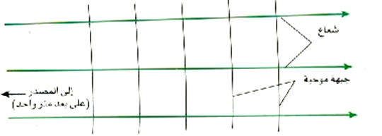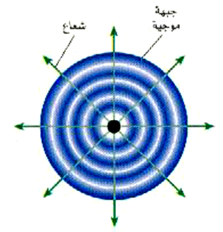 الشكل :(1) تعتمد الأشعة مع الجبهات الموجية وهي تدل على اتجاه انتشار الموجة.