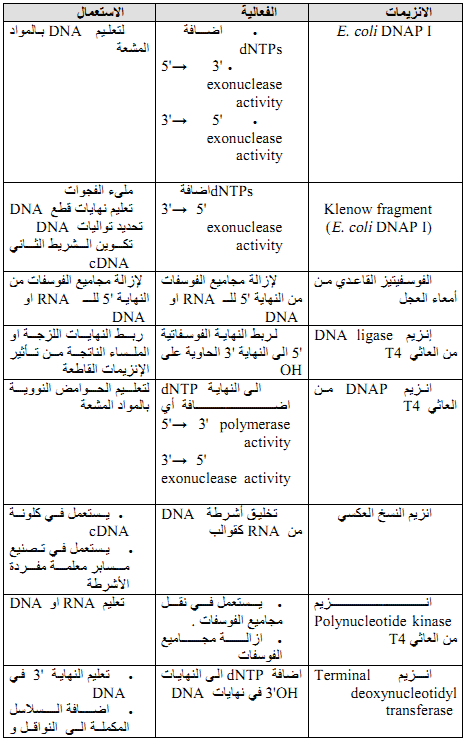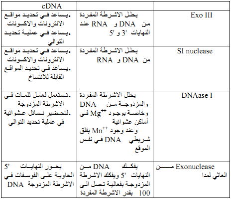 جدول 4 : اهم الانزيمات القاطعة المستعملة في الهندسة الوراثية