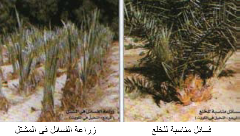 وهذه المسافة أفضل مسافة لزراعة الفسائل ويمكن تقليلها إلى مسافة ( 18 * 18 ) قدم كحد ادني.