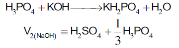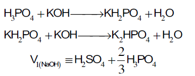 المرحلة الأولى:عند استخدام دليل الفينول فثالين نجد أن حجم هيدروكسيد البوتاسيوم المستهلك من السحاحة يكافئ كل الكبريتيك وثلثي الفوسفوريك ومعادلات التفاعل توضح ذلك