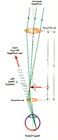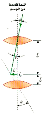 أما الزاوية المكبرة 'ϕ التي تراها العين فتعطى بالمعادلة: