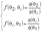 وبما أنَّ الطرف الأيسر لا يعتمد إلاَّ على المتغيريْن θ2 و θ1 فإنَّ الطرف الأيمن يجب أنْ يُحقَّق ذلك، أي أنَّ حاصل الضرب في الطرف الأيمن يجب أنْ لا يحوي θi بشكل مباشر والحل الوحيد لذلك هو أنْ تُحقَّق الدالتان f(θ2, θi) و f(θi, θ1) الشرط التالي: