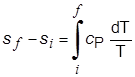 وفي عمليَّة أيزوباريَّة منعكسة لا يُصاحبها تغير في الطور يكون السريان الحراري مساوياً لـِ CP dT ويُعطى التغير في الإنْتروبي بالعلاقة:
