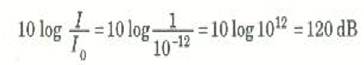 وحيث ان شدة الصوت المسبب للألم 1 W/m2، إذن مستوى شدة الصوت المسبب للألم يساوي: