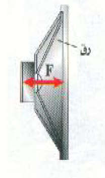 ان عمل مجهار (مكبر صوت) يصدر صوتاً بسيطاً. يتركب المجهار البسيط. من غشاء مخروطي مصنوع من مادة مرنة، يسمى الرق، يمكنه أن يتذبذب ذهاباً وإياباً تحت تأثير قوة مسلطة F، كما هو مبين بالشكل (1).