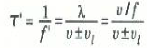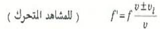 حيث v سرعة الموجات في الوسط ، بينما تنطبق الإشارة الموجية في حالة ابتعاد المصدر عن المشاهد، وتنطبق الإشارة السالبة في حالة اقتراب المصدر من المشاهد.