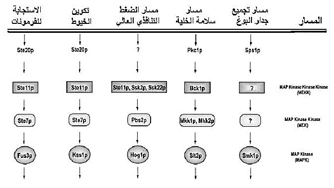 شكل 1 : مسارات MAPK المختلفة في خميرة S. cerevisiae