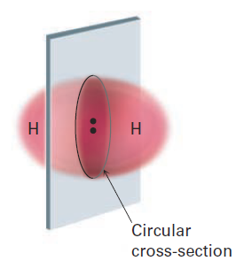 Figure 1 The cylindrical symmetry of the H- H σ bond in an H2 molecule. The intersection of a plane cutting through the σ bond is a circle.