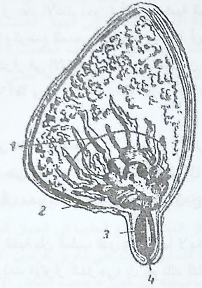 3- مخزن الحلمة. 4- قناة الحلمة.