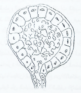 الشكل 2. مخطط يبين بناء الحويصل حيث يلاحظ فيه الغشاء الخارجي وطبقة واحدة من الخلايا المفرزة