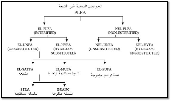 شكل 2 : تقسيم الحوامض الدهنية الموجودة في الاحياء المجهرية