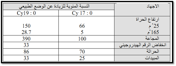 جدول 3 : تغير الحوامض الدهنية الحلقية تحت ظروف الاجهاد