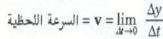 هكذا ( في حالة الحدية عندما تقترب tΔ من الصفر) . هذا التعريف هو التمثيل الرياضي للطريقة العلمية التي تكون فيها tΔ من الصفر بحيث تصبح السرعة المتوسطة بين A و B مساوية أساساً للسرعة اللحظية عند C , وبأي ضباطية نريد .
