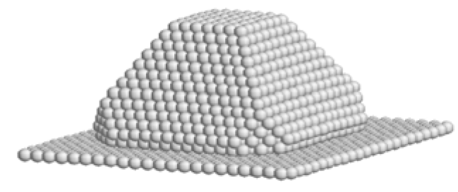 To simulate the Pd–MgO interaction, potential curves had to be constructed using ab initio energy calculations. Using these potentials, the authors were able to simulate Pd crystals of different sizes, treating the support as fixed. Figure 2 shows the equilibrium shape obtained for a 5-nm Pd particle.