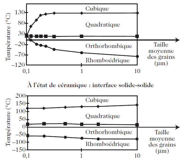 Still in the second case, for a solid–solid interface, a very slight variation is observed in the transition temperatures as a function of grain size. Nanograins in a bulk solid material would therefore appear to behave like large grains.