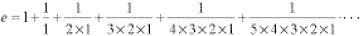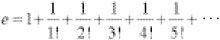 The factorial notation using an exclamation mark is handy here. In this, for example, 5! = 5×4×3×2×1. Using this notation, e takes the more familiar form