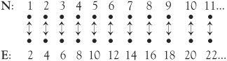 The notion of ‘more’ though, is rather hazy when we are dealing with sets with an indefinite number of elements. We could do better with the one-to-one correspondence idea. Surprisingly, there is a one-to-one correspondence between N and the set of even numbers E: