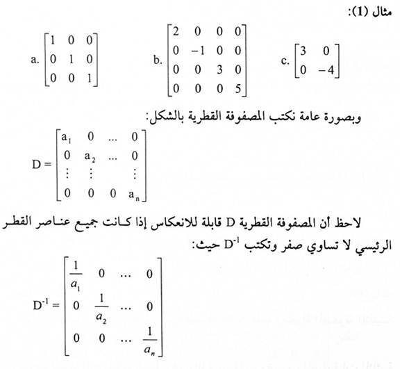 أنظمة المعادلات الخطية والمصفوفات -بعض انواع المصفوفات