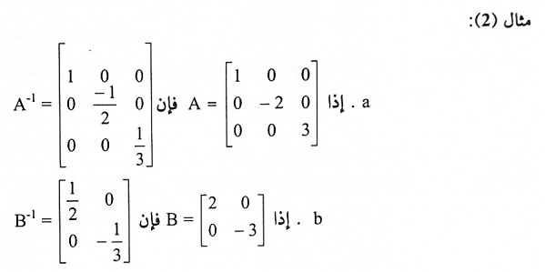 لاحظ أن A قابلة للانعكاس لأن جميع عناصر قطرها الرئيسي لا تساوي صفر بينما B غير قابلة للانعكاس.