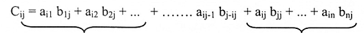 Cij = aij bij + ai2 b2j + … + ain bnj (انظر تعريف ضرب المصفوفات).