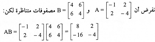 ضرب المصفوفات المتناظرة ليس ضرورياً أن يكون متناظراً.