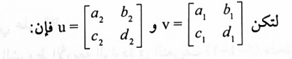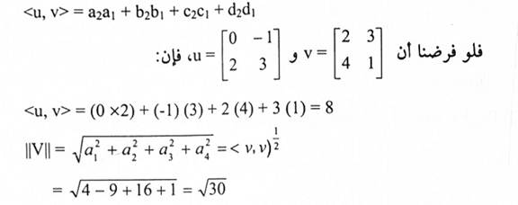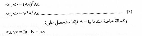 (2) إذا كانت v = (v1, v2, …. , vn) و u = u1, u2, … , un) متجهات في Rn فإن الصيغة: