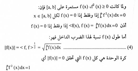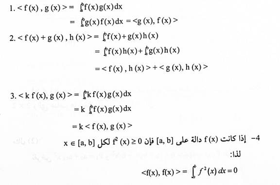 لتكن f(x) g(x) , دوال مستمرة على الفترة [a, b] فإن <f,g> المعرفة: