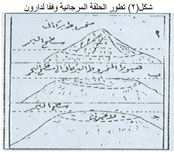 وضع داروِن أساس هذه النظرية سنة ١٨٣٢ وتم تعديلها سنة ١٨٤٢ بعد أن تأكد خلال رحلاته البحرية من أن المرجان ينمو فقط في المياه الضحلة. وترى هذه النظرية أن المرجان ينمو إلى أعلى حتى يصل إلى مستوى سطح الماء عند الجزر، ومع هبوط السواحل المرجانية وارتفاع منسوب الماء يصبح المرجان في أعماق بعيدة ويتمشى نموه الرأسي والأفقي تبعا لمعدلات الهبوط، مع زيادة معدلات سرعة النمو عن الحافة الخارجية، وطبقا لهذه النظرية فإن الحاجز المرجاني عبارة عن بقايا لخط ساحل قديم هبط تكتونيا، وأن الحلقات المرجانية في معظمها عبارة عن أطر مرجانية تطوق جزرا قد هبطت لتتوسطها بحيرة وتتحول في النهاية إلى حلقة مرجانية , وأن الشعاب المرجانية التي نراها هي تلك التي استطاعت أن تحافظ على نموها الرأسي مع الهبوط. أما الشعاب التي هبطت بمعدل أسرع من معدل النمو المرجاني فتظهر مغمورة عند أعماق قد تصل إلى ٩٠٠ متر، وتوضح الصورة رقم (2) سطح إطار مرجاني ممتد أمام ساحل جزر فرسان البحر الأحمر لاحظ عدم انتظام سطح الإطار, ومما يؤخذ على هذه النظرية أنها لم توضح ما إذا كان الغمر قد حدث فجأة أم بشكل تدريجي وهل تم بصورة مستمرة أم على مراحل, وعموما، فإن هذه النظرية مع بساطتها قد جذبت اهتمام الكثيرين مثل ديفيز وغيره من الباحثين.