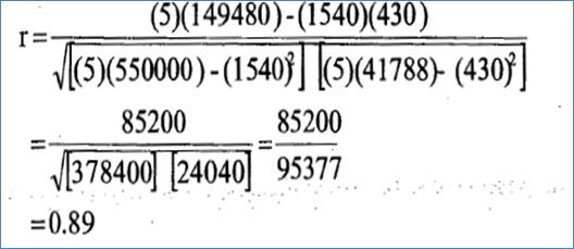 مثال: وبتعويض نتائج التحليل لمثال ( 7-3) في المعادلة السابقة تحسب قيمة معامل الارتباط كالآتي: