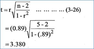 3 . نحسب القيمة المعيارية t لـ r بالقاعدة التالية: