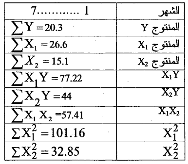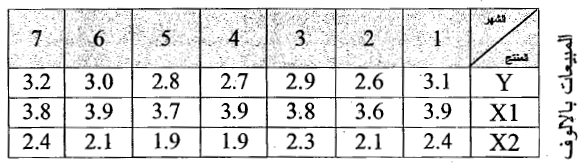 والمطلوب/ استخدام الانحدار المتعدد لتنبؤ الطلب على المنتج y إذا قررت الشركة طرح كميات مقدارها 4100 و 2500 من المنتوجين1 × و 2× على التوالي خلال الشهر الثامن.