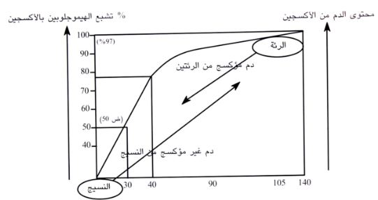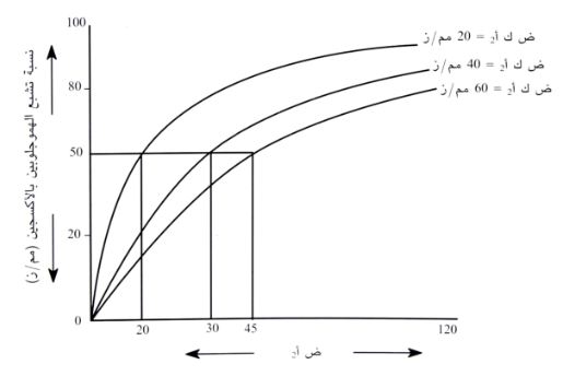تزداد نسبة تشبع الهيموجلوبين كلما ازداد ض أ2 وذلك كما هو مبين في الشكل 1).